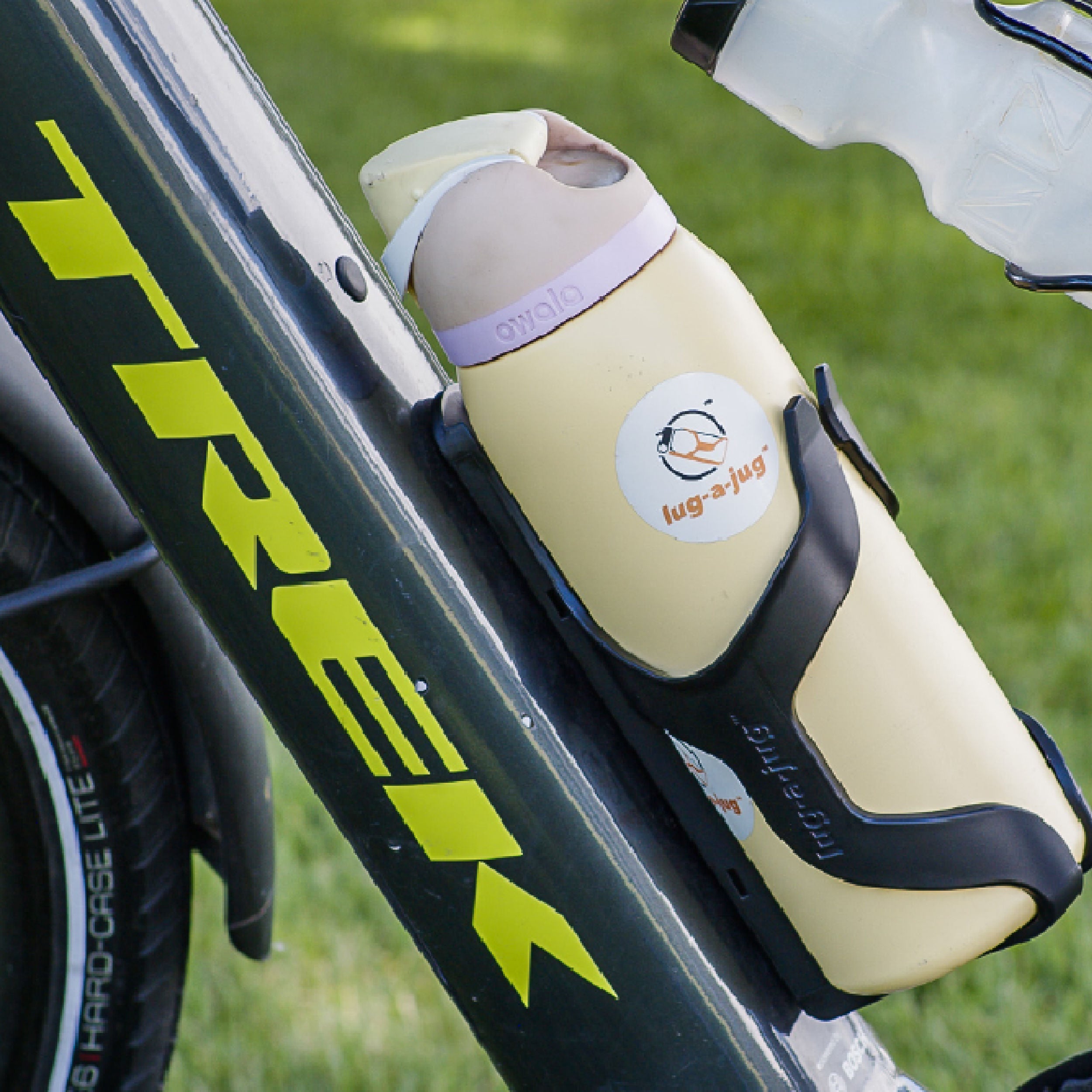 Lug-a-Jug Water Bottle Holder for Large Bottles and Containers.  Your ultimate hydration companion.  This premium water bottle cage is designed to fit most oversized bottles between 3o -40 oz and offers great versatility.  Whether you're biking, golfing, strolling, or using a walker, the Lug-a-Jug easily attaches to all your favorite gear.  Crafted from durable, lightweight materials, it keeps your drink secure and accessible wherever your adventures take you.