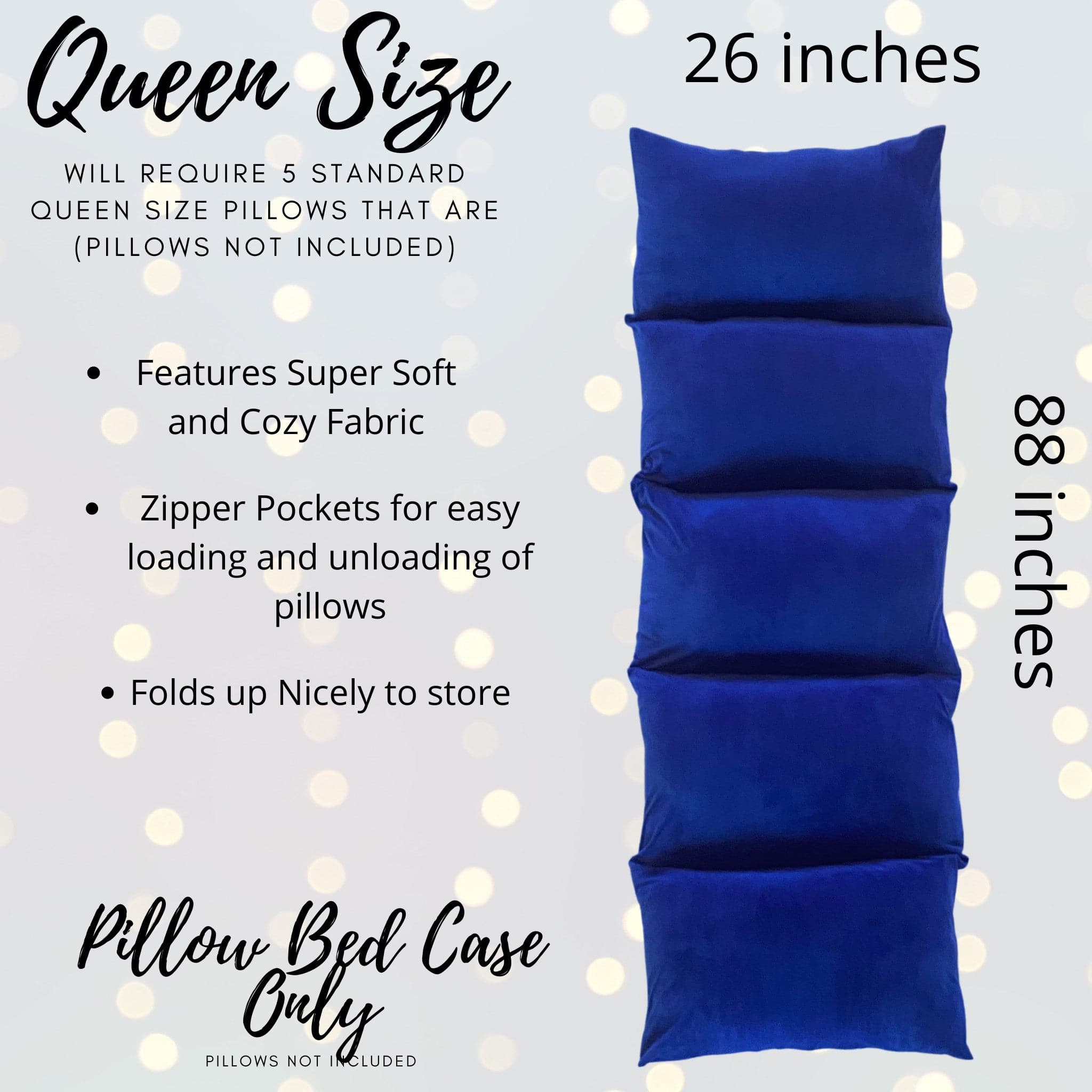 - This is a large pillow case cover, and does not include the pillows. You will need to provide 5 queen size pillows, and load 1 pillow into each of the zippered pockets. When you no longer need the extra sleeping or lounging pillow, it is easy to unload and wash, or fold up and put away. Machine wash on delicate cycle or hand wash. Lay flat to dry or tumble dry on low.