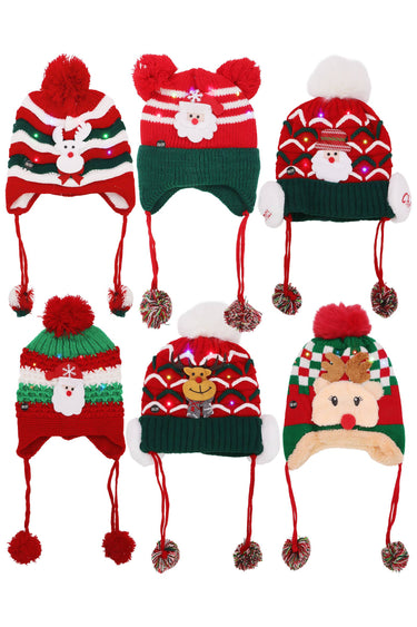 Kids Christmas Led Ear Cover Chin Strap Beanie