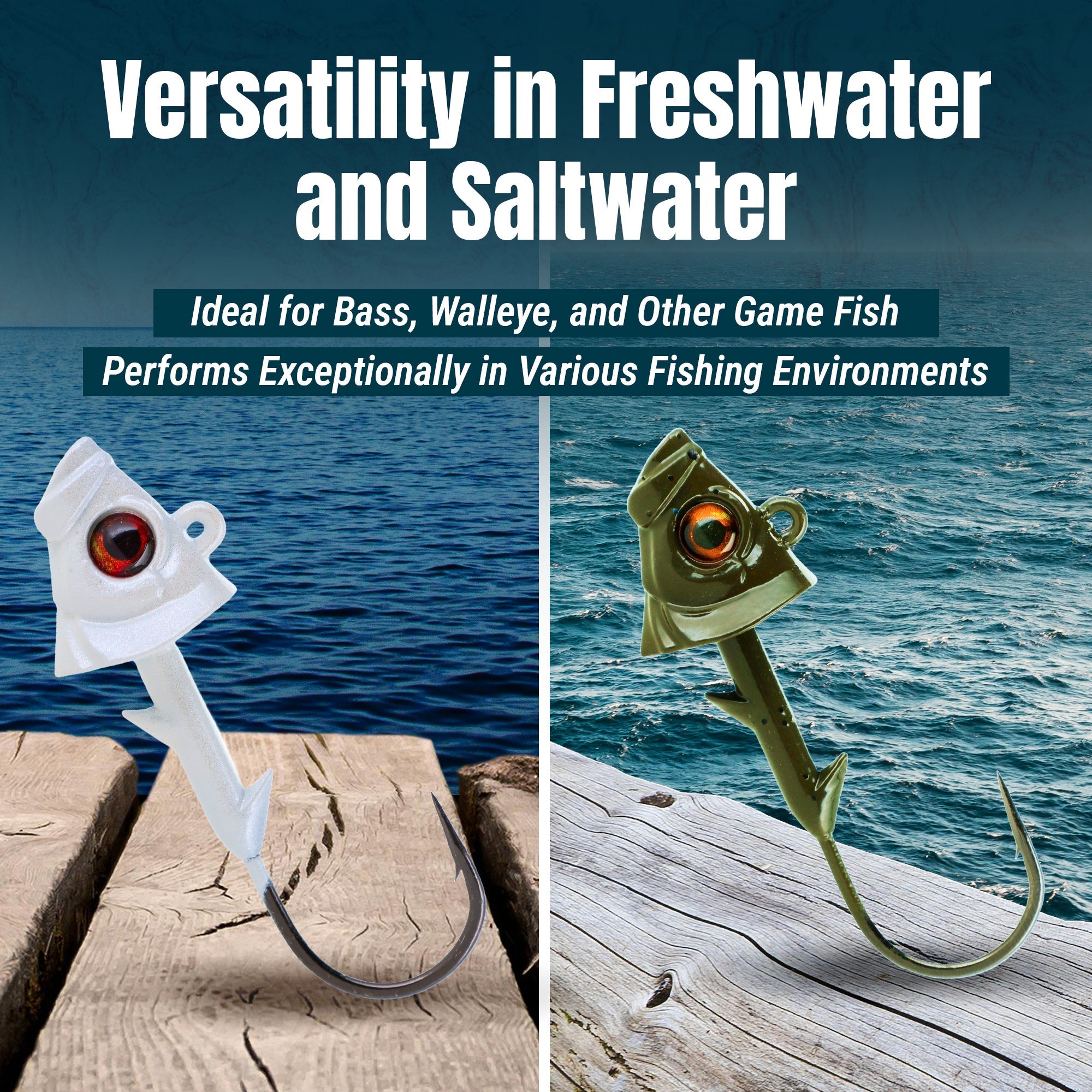 - Realistic Fish Head Design: The intricate design of these jigs, complete with 3D eyes, provides a realistic look that draws fish in by mimicking natural prey.