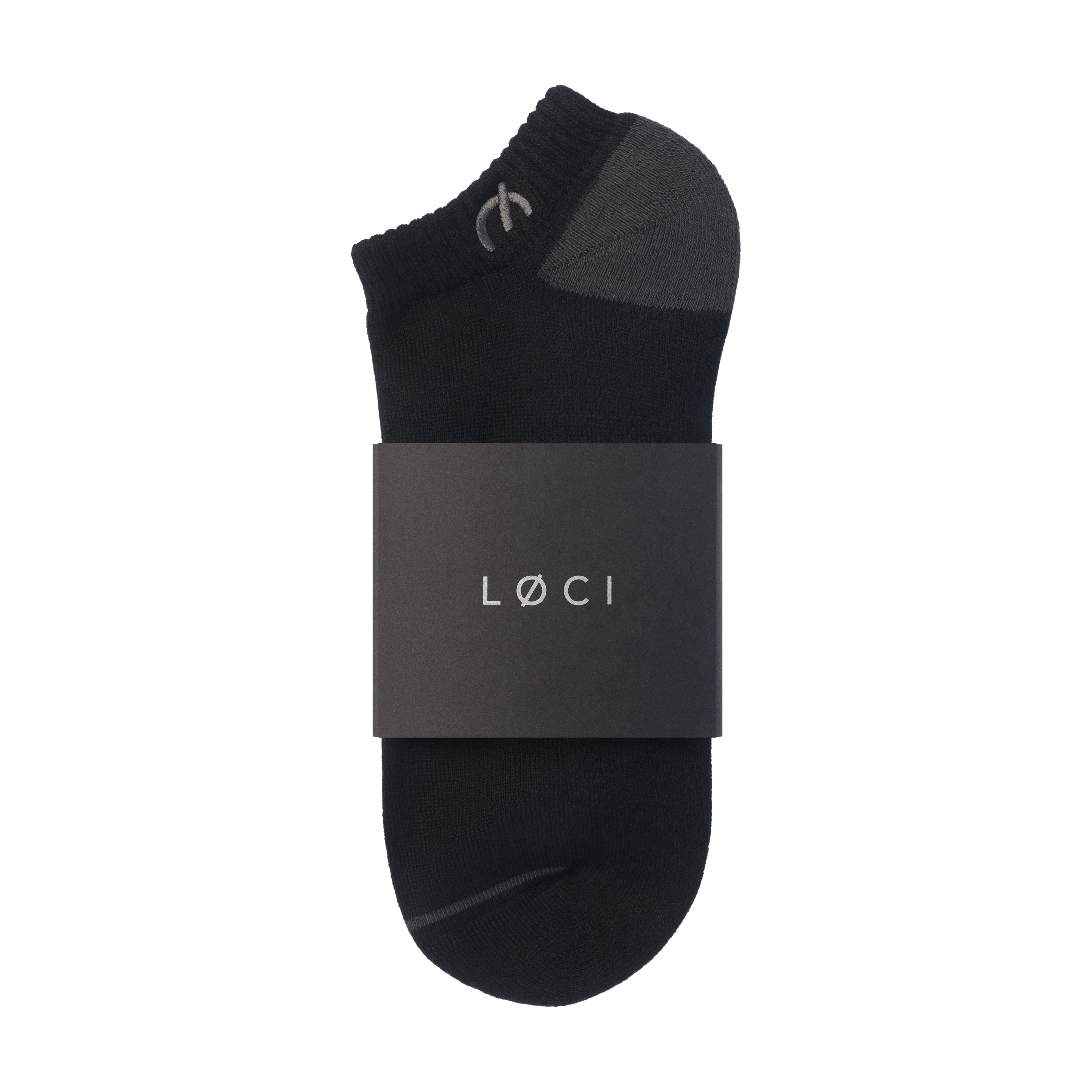 Crafted from a soft and breathable stretchy cotton blend, the sneaker socks provide cushioned support at the heel and toe, ensuring a comfortable fit throughout the day. Additionally, these socks feature a contrast iconic arch branding embroidered on the cuff, along with the LØCI logo on the footbed.