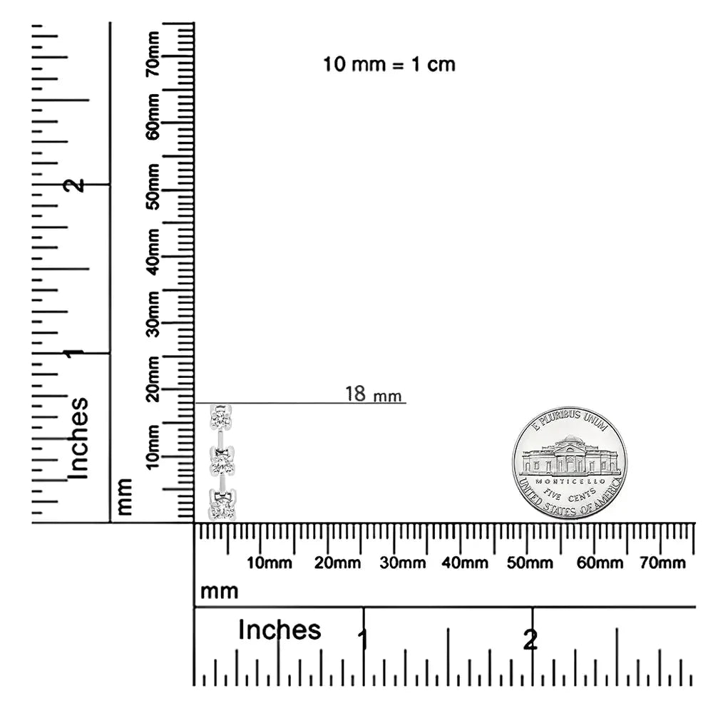 14K Gold Round Diamond Three-Stone Drop Pendant 18" Necklace - (H-I Color, SI1-SI2 Clarity)