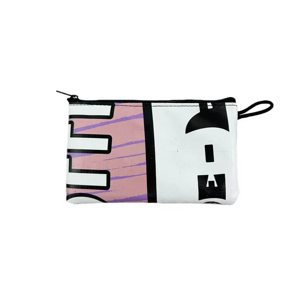 Designed to be a simple and stylish storage solution, this pouch is made from upcycled banners so your stuff stays protected and dry. It's a great wallet alternative, cell phone case, spare change container, or tool/flat repair kit.