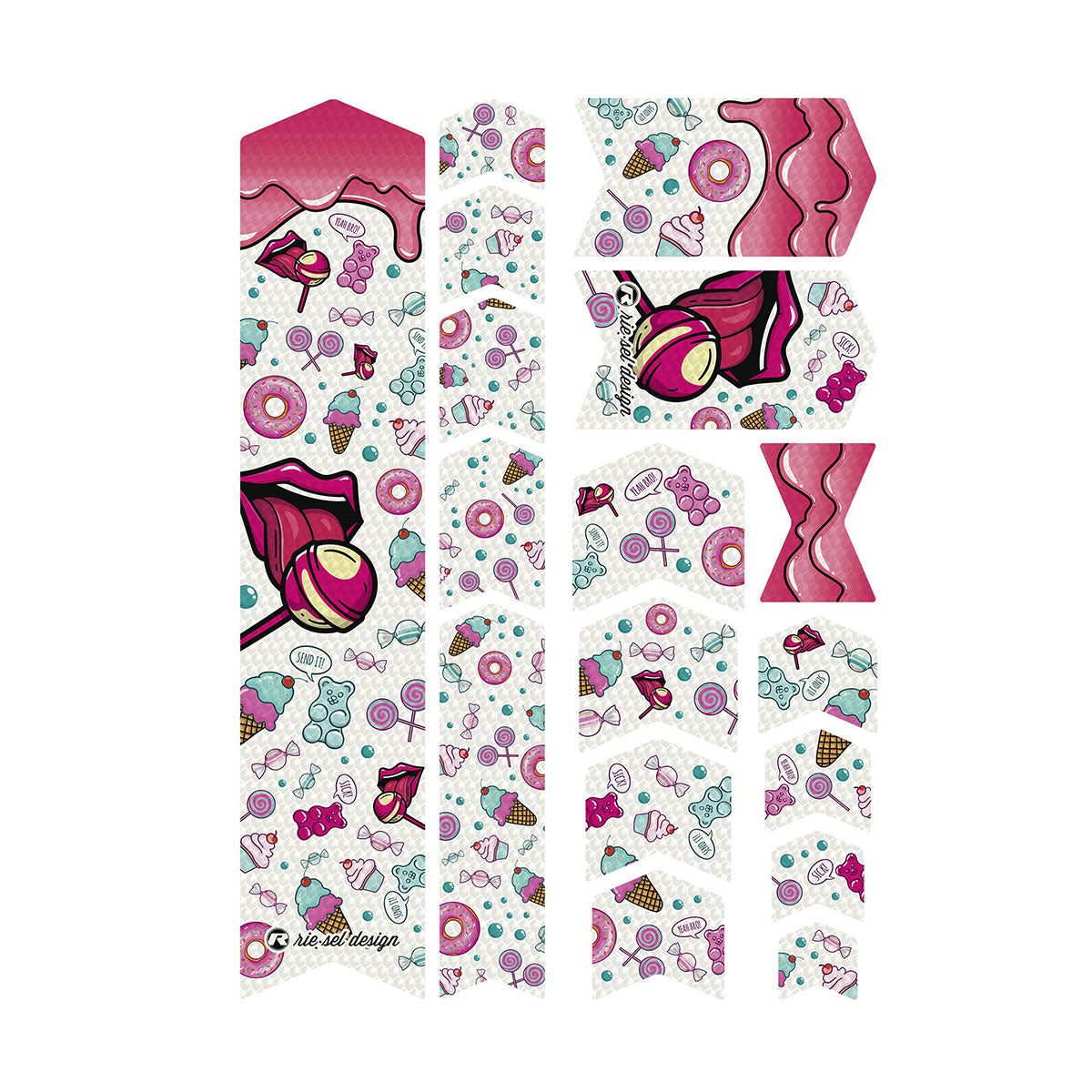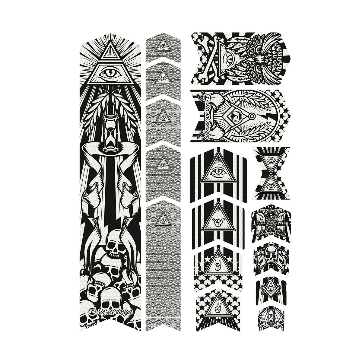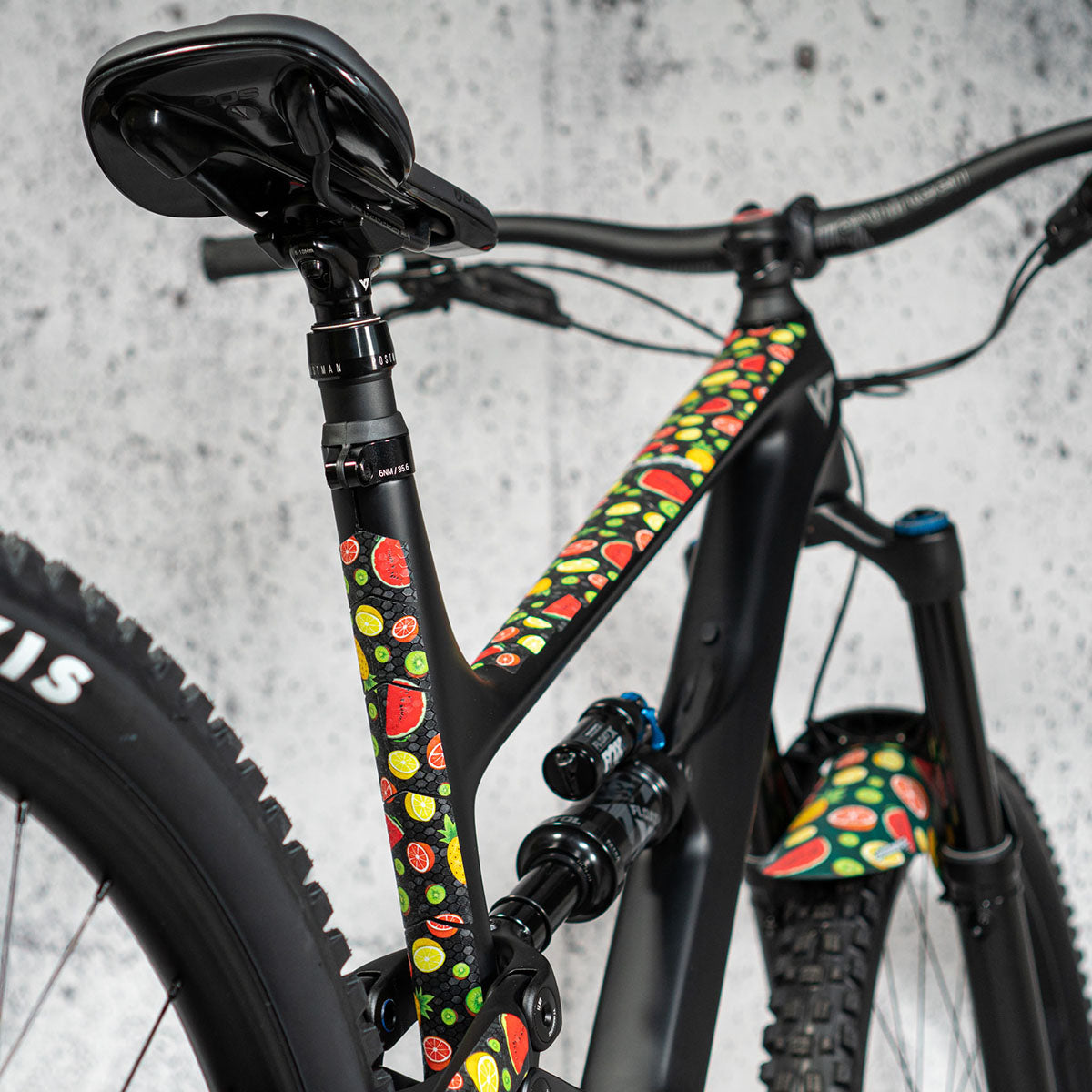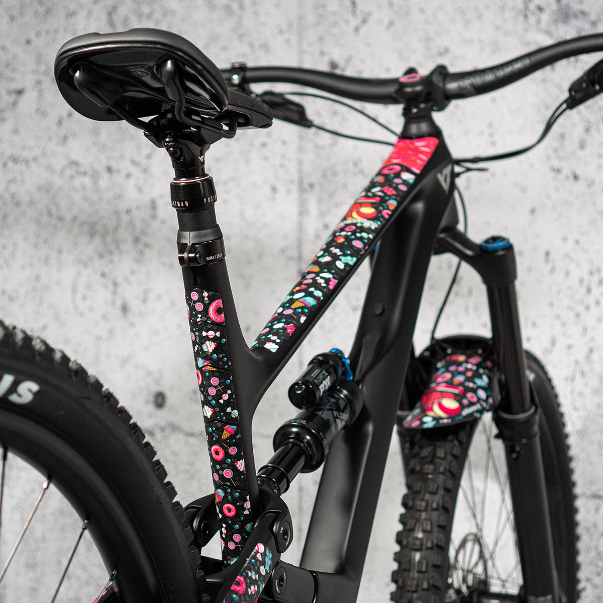 DESIGNED TO PROTECT TOP TUBE, DOWN TUBE, AND SEAT TUBE. Kit includes 17 modular shapes from 70 x 340 mm to 30 x 30 mm and allows you to protect and style your bike according to your needs.