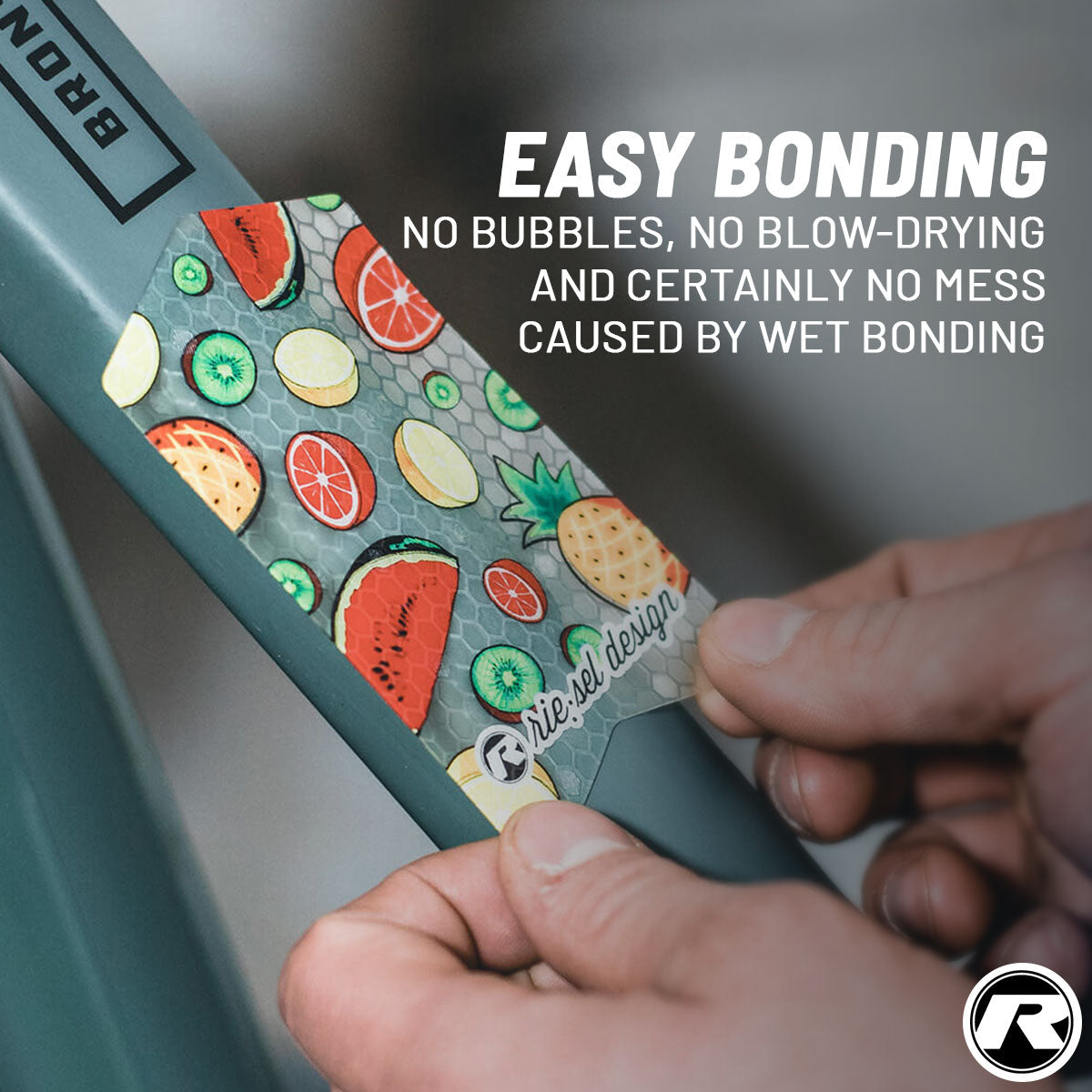 EASY TO INSTALL. No bubbles, no heat gun and no wet application necessary. frame:TAPE 3000 is the most user-friendly frame guard ever. Just clean your bike and stick it on. That’s it. You can even reposition it, while the glue is fresh, if you placed it badly the first time.