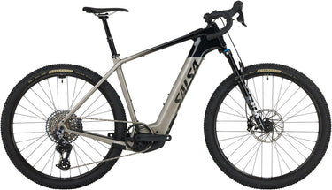 Tributary C is Salsa’s electric rugged-road adventure bike. It’s built to devour big burly dirt routes. Tributary’s well-balanced gravel geometry massive tire clearance and suspension fork mean total comfort and control on sketchy surfaces — even at ebike speeds. The BOSCH Performance Line Speed motor empowers riders to tackle demanding bikepacking routes explore vast networks of forest roads or add miles to any adventure. Pair all that with Salsa’s on-bike cargo features and Tributary is ready to take riders from their front door to far-out.High-modulus carbon fiber frame Boost suspension fork BOSCH Performance Line Speed class 3 mid-drive motor with smart system 28 mph or 45 km/h max assist 85Nm max torque 625Wh Bosch PowerTube internal battery Compatible with Bosch range extender battery (sold separately) Class 5™ VRS Internal cable and dropper post routing with port for integrated lighting system 148 x 12 Boost thru-axle rear SRAM UDH compatible Rear rack and rear fender mounts Compatible with direct-mount frame bags Two bottle mounts inside main triangle on all sizes Frame accommodates up to 2.6" tire