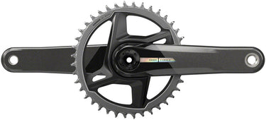 The SRAM Force 1 Wide carbon crankset with X-SYNC chain retaining chainring is incredibly lightweight and strong; combine this with your wide range cassette and you have a clean way to tackle multiple disciplines. The wide chainline crankset fits in road and MTB bottom bracket standards so frames can fit wider gravel tires.Direct mount chainrings are lighter and stiffer than traditional spider-based rings SRAM X-SYNC wide-tooth narrow-tooth chainring technology provides maximum chain control Wide chainline crankset to fit the biggest gravel tires Longer DUB crank spindle accommodates both Road and MTB width frame bottom bracket standards for unmatched cross-compatibility across brands Compatible with 135mm 142mm and Boost rear spacing DUB bottom bracket (Sold separately) adds durability and simplicity Can be upgraded to power meter 47.5mm Chainline