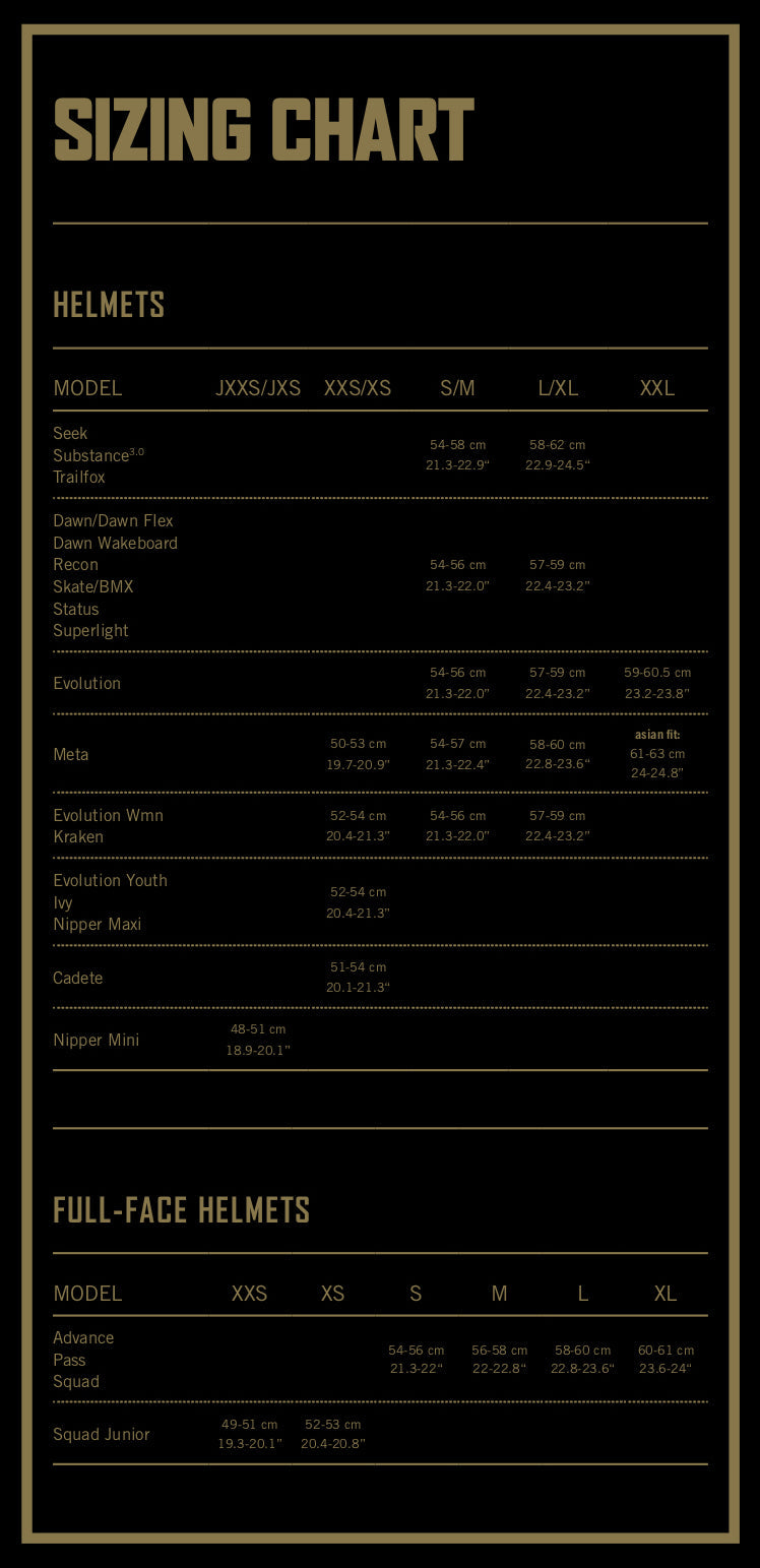 TSG Dawn Flex helmet comes in two sizes: S/M and L/XL, or head circumference of 54-56 cm or 57-59 cm respectively.