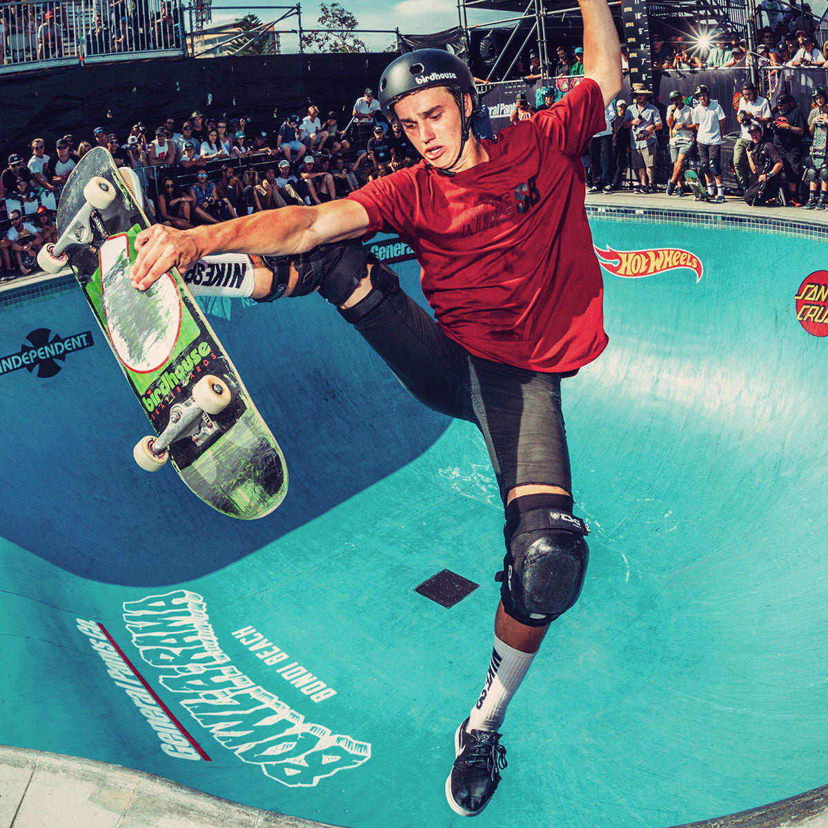 Developed in partnership with pro skater Jono Schwan the low-profile Force V knee pad is the ultimate hard cap protection for vert skaters. The pad is made from durable Cordura, has surround padding and a hardcore cap so that Jono can ride XGames ramps safely with confidence. For ultimate protection we minimized movement, putting an anti-shift silicone print on the liner and fastened it with two adjustable Neoprene butterfly straps for pro-level hold.