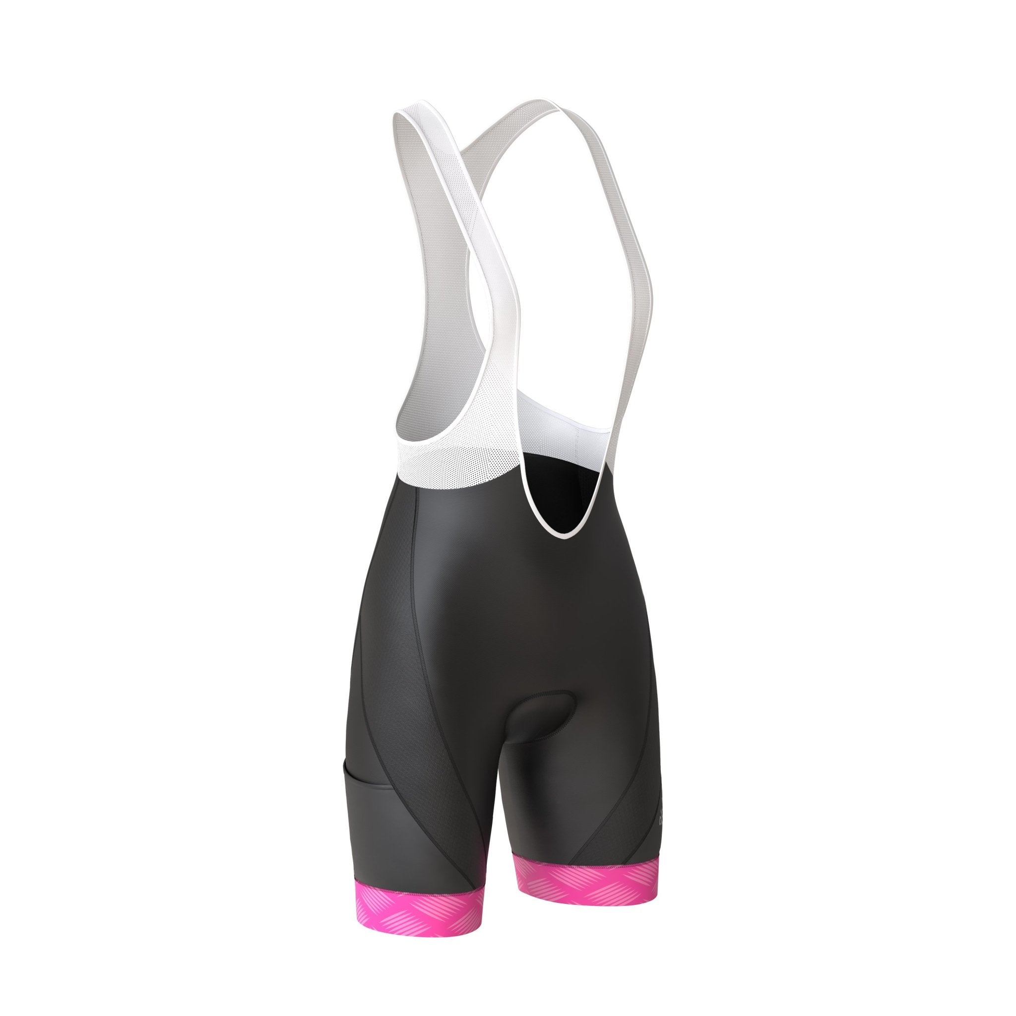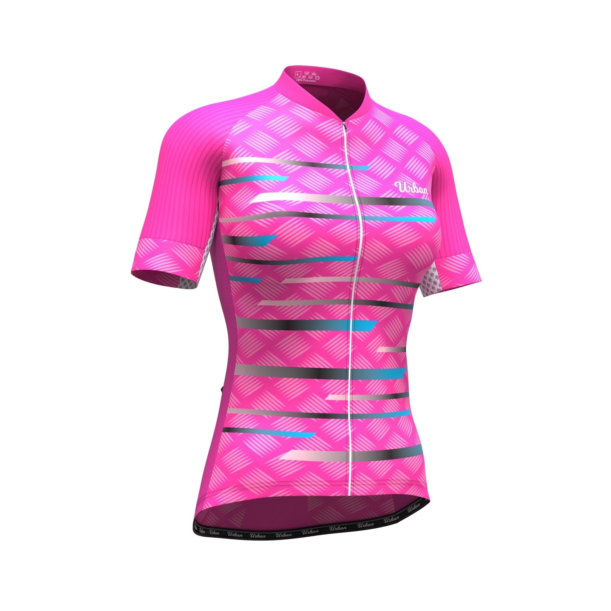Designed in the U.S.A. for our pro female athletes seeking comfort and performance. Our engineers obsess over anatomic fit, aerodynamics, safety, and fabric innovation so you can focus on your ride. These lightweight and breathable jerseys and bib shorts keep you feeling comfortable and dry. The Urban printed elastic grippers hold the jersey and short edges in place and from riding up. The longer shaped back is well suited for cycling riding position. The Jersey is a full length zipper with 3 rear pockets plus an extra zipped pocket for your valuables. Reflectors on both the back and thighs were added for dusk and night riding. BONUS: These bib shorts have a mobile phone pocket!
