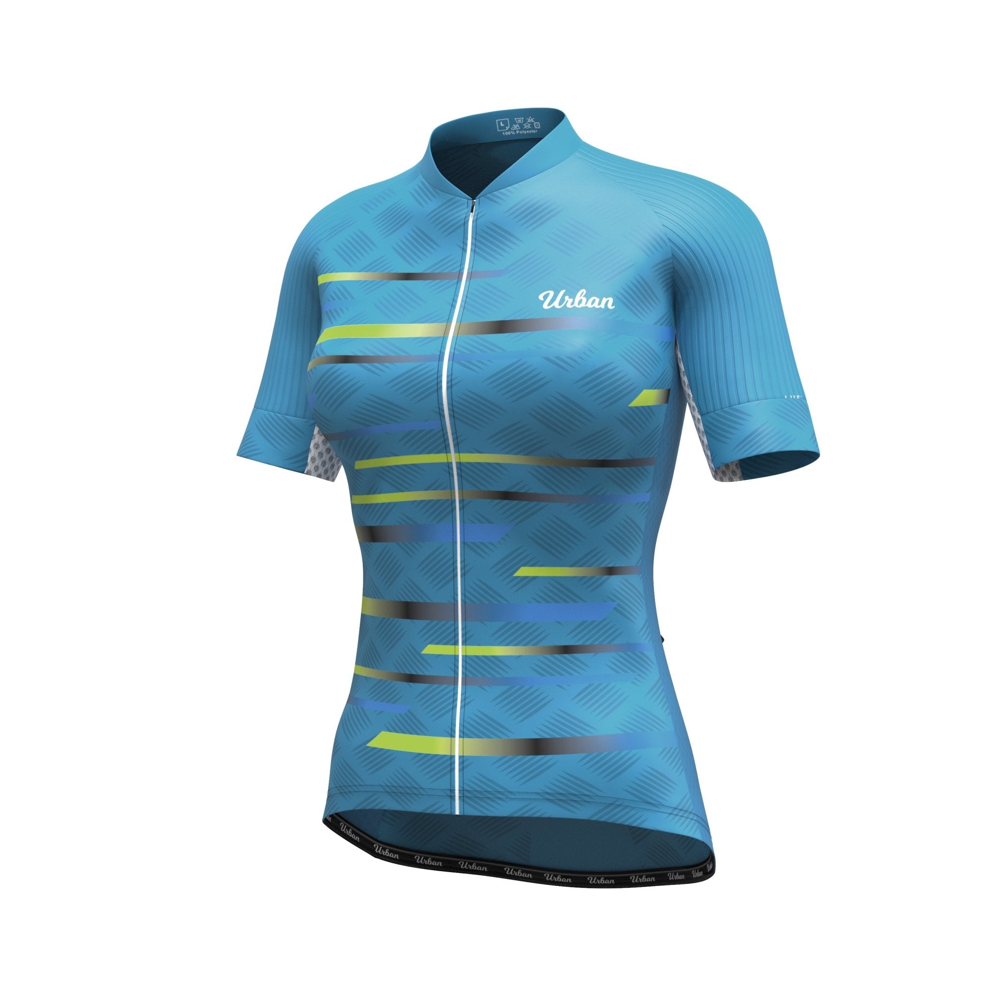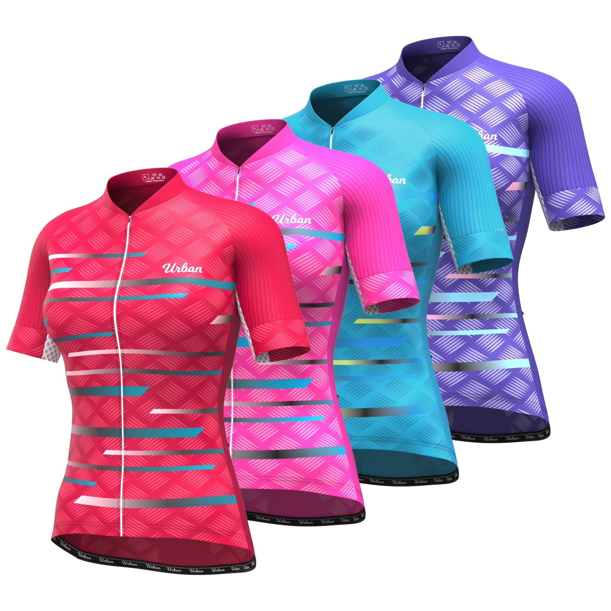 Designed in the U.S.A. for our pro female athletes seeking comfort and performance. Our engineers obsess over anatomic fit, aerodynamics, safety, and fabric innovation so you can focus on your ride. These lightweight and breathable jerseys and bib shorts keep you feeling comfortable and dry. The Urban printed elastic grippers hold the jersey and short edges in place and from riding up. The longer shaped back is well suited for cycling riding position. The Jersey is a full length zipper with 3 rear pockets plus an extra zipped pocket for your valuables. Reflectors on both the back and thighs were added for dusk and night riding. BONUS: These bib shorts have a mobile phone pocket!