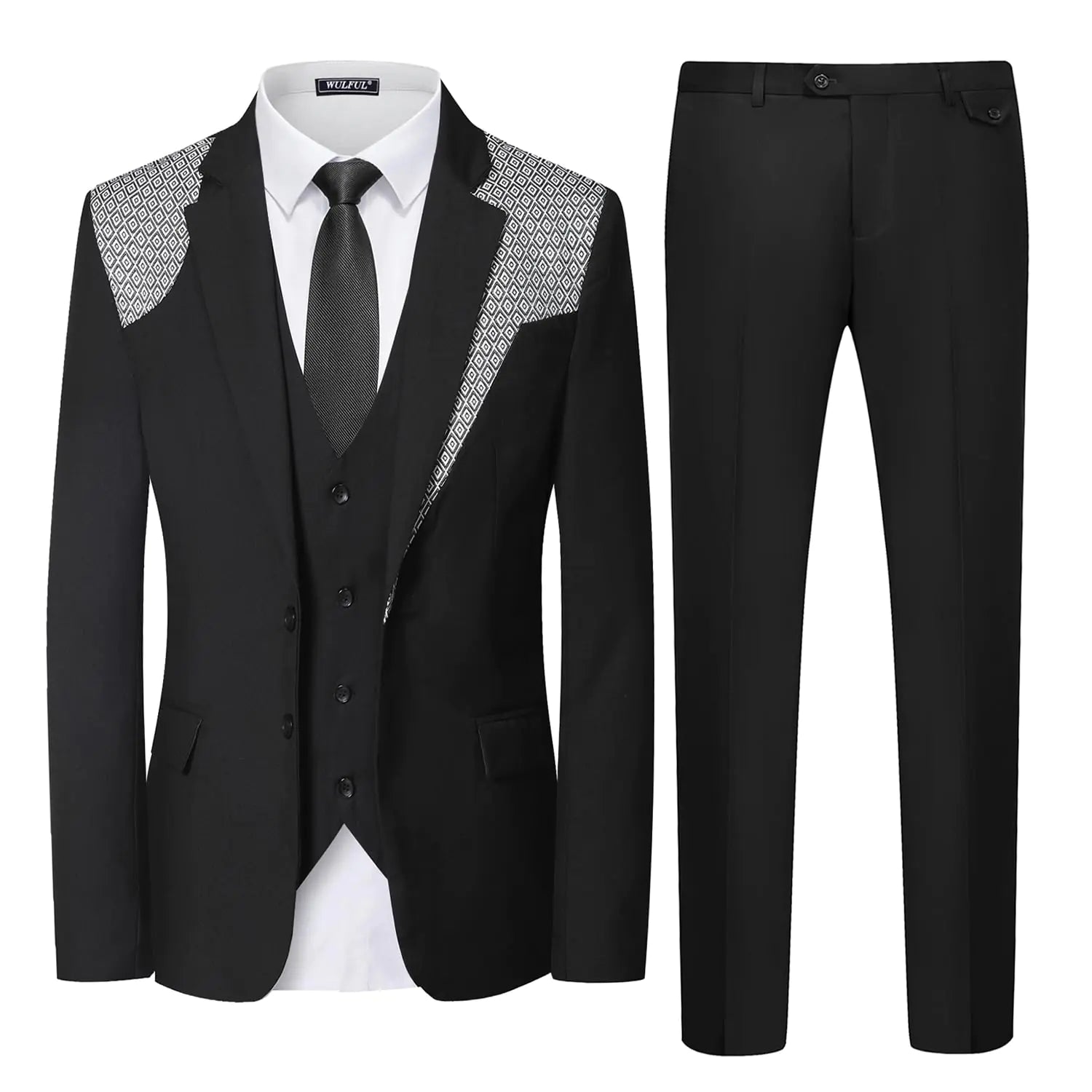 WULFUL Men's 3 Piece Slim Fit Suit Set Two Button Blazer Jacket Vest Pants Tuxedo Set for Party, Wedding and Business